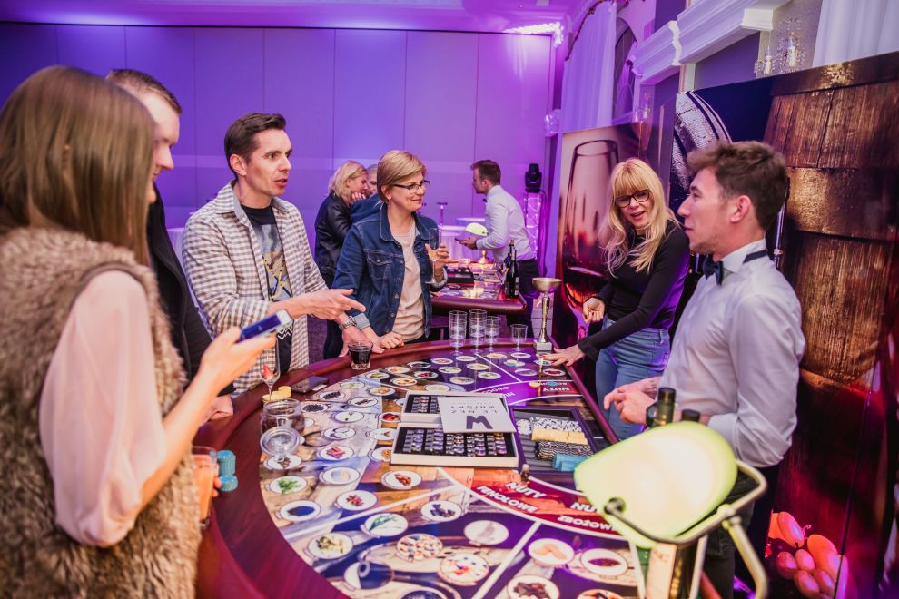Whisky Casino - whisky jest coraz modniejszym i popularniejszym trunkiem. Czy znasz różnice pomiędzy whisky i whiskey? Wiesz, gdzie produkowany jest Burbon? Nie? Połączenie degustacji i wspaniałej zabawy na dwóch profesjonalnych stołach, gwarantuje niezapomniane wrażenia oraz odpowiedzi na wszystkie pytania. Goście dowiedzą się o różnicach w smaku, aromacie, kolorze alkoholu. Atrakcja odczuwana wszystkimi zmysłami. Nasi krupierzy zarażą pasją i humorem, a whisky będzie się lała strumieniami. Przy stole może grać maksymalnie 7 osób – zadaniem uczestnika jest odgadnięcie prezentowanego aromatu. Uczestnik spośród 54 aromatów rozmieszczonych na stole, obstawia ten, który jego zdaniem odpowiada prezentowanemu. Dodatkowo może skorzystać z szans prostych obstawiając nuty zapachowe, np. roślinne, dębowe, itp.