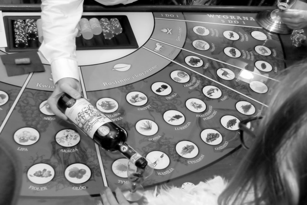 Wine Casino - to nowy wymiar rozrywki w stylu kasyno. Szlachetne gatunki wina użyte w rozgrywce pobudzą zmysły i zapewnią doskonały nastrój. Podczas zabawy odgadywać będziemy aromaty wykorzystywane w produkcji wina. Profesjonalni krupierzy bawiąc gości opowiedzą o tym szlachetnym trunku i ujawnią jego tajemnice. Alternative Casino jest idealnym uzupełnieniem tradycyjnego kasyna, sprawdza się również jako samodzielna atrakcja.Przy stole może grać maksymalnie 7 osób – zadaniem uczestnika jest odgadnięcie prezentowanego aromatu. Uczestnik spośród 54 aromatów rozmieszczonych na stole, obstawia ten, który jego zdaniem odpowiada prezentowanemu. Dodatkowo może skorzystać z szans prostych obstawiając nuty zapachowe, np. zwierzęce, kwiatowe, itp.